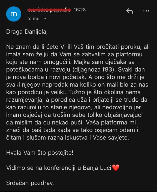 I tako je nastala ova zajednica, iz stvarne potrebe ljudi, iz moje želje da postoji jedno mjesto koje je sigurno, stručno, blisko i živo.